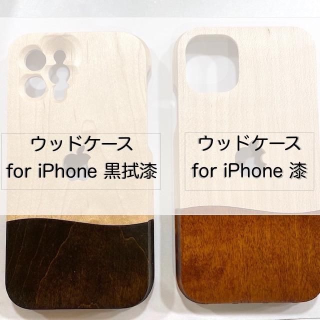 【 ウッドケース for iPhone 黒拭漆 】 と【 ウッドケース for iPhone 漆 】 がございます。